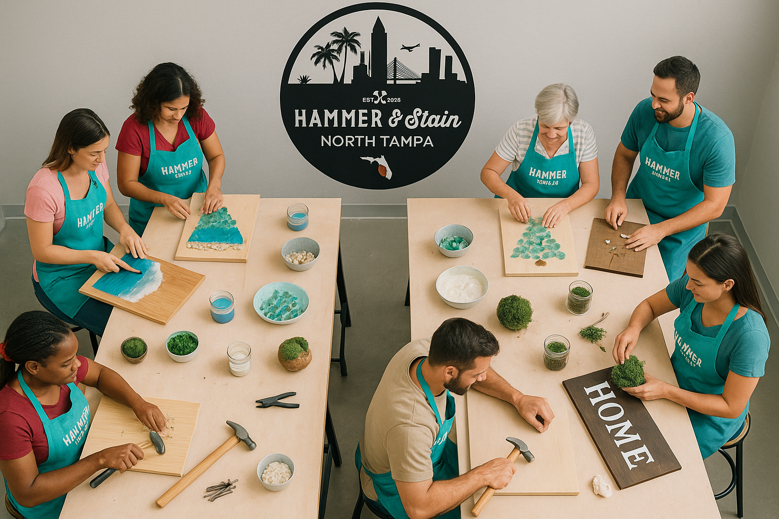 Welcome to Hammer & Stain Tampa – your mobile DIY arts and craft studio, where creativity hits the road and fun is always in the making!