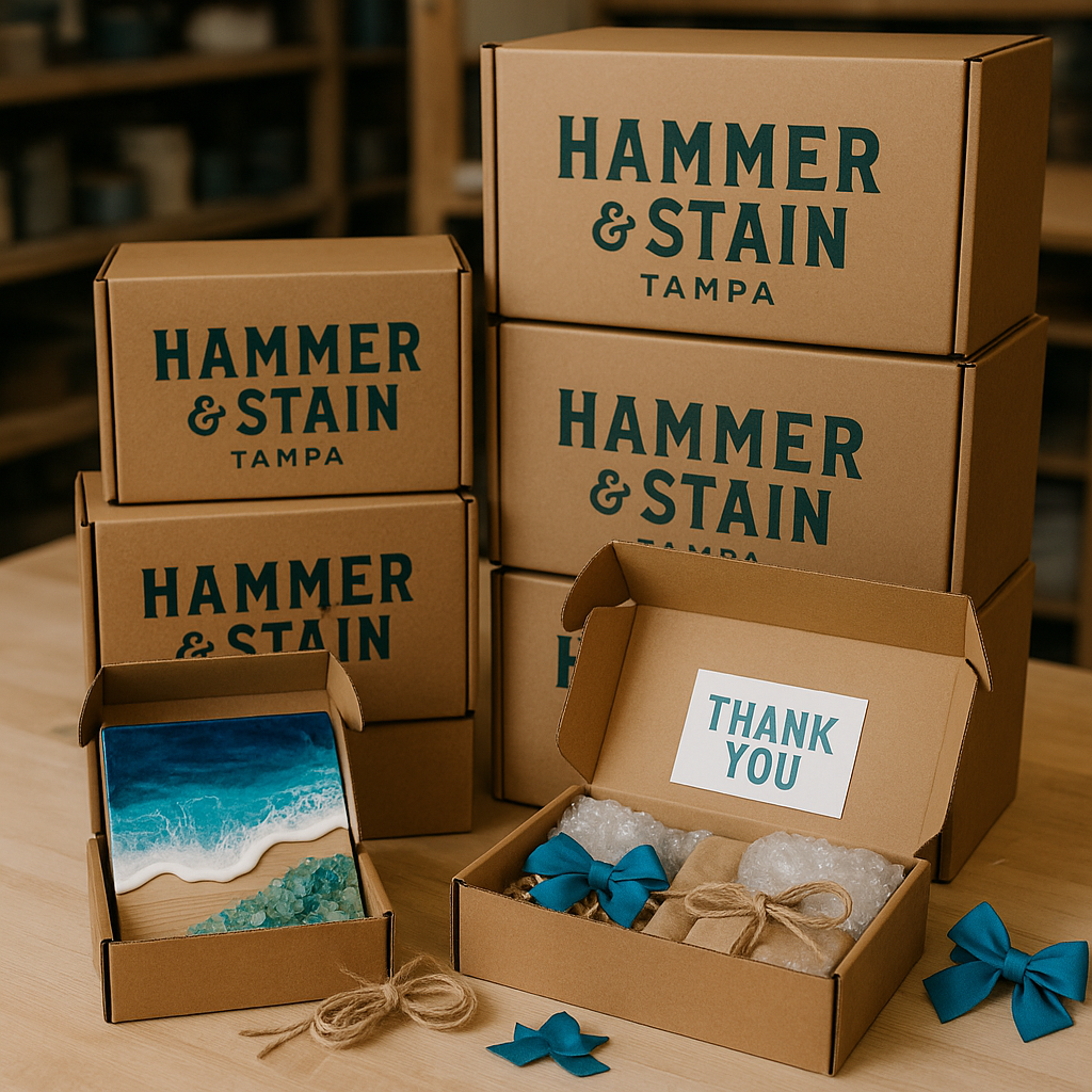 At Hammer & Stain Tampa, we believe everyone is creative—you just need the right space to explore it. Whether it’s a cozy get-together, a special celebration, or a corporate team-building session, we bring the DIY magic straight to you. With curated projects, guided fun, and zero clean-up stress, it’s time to relax, create, and connect.