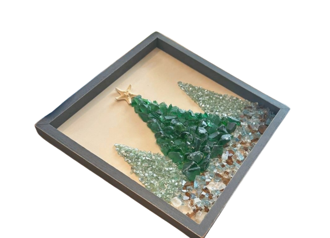 • 9" Square Wood Frame with Crushed Sea Glass & Resin
